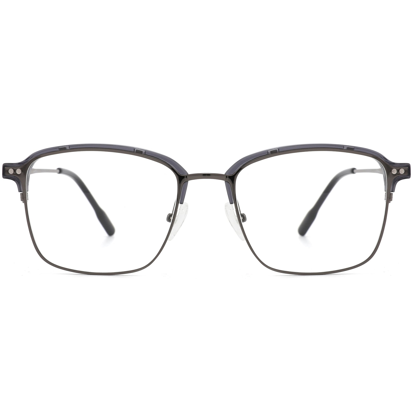 These sophisticated square eyeglasses feature a blend of acetate rims and sleek metal temples, offering a refined yet stylish look. The transparent acetate detailing along the front adds a modern flair, while the adjustable nose pads provide a customized and comfortable fit. Slender temple arms and spring hinges ensure lightweight wear, making these frames ideal for all-day use. Perfect for oval and round face shapes, these glasses are a versatile accessory that combines classic design with a contemporary twist.