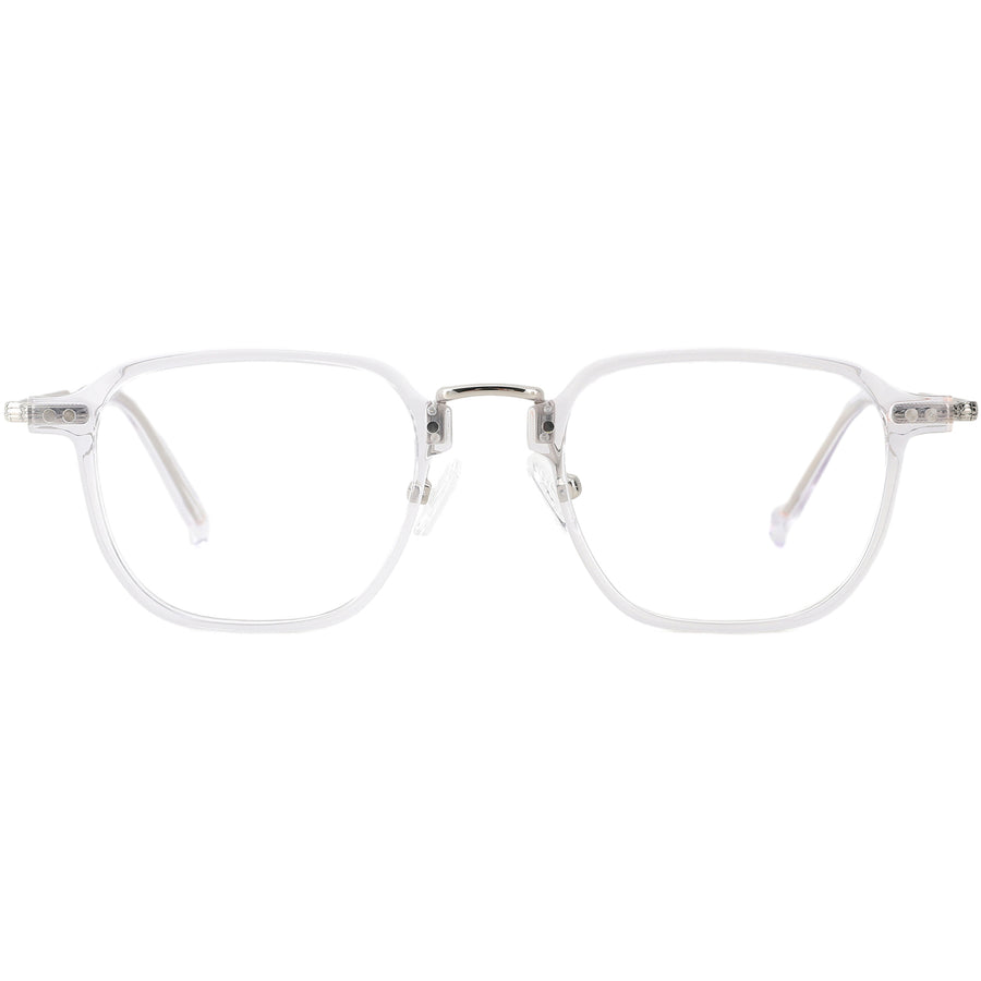 Embrace classic sophistication with these square eyeglasses, featuring a lightweight metal frame and subtle tortoiseshell accents at the temple tips. The combination of acetate and metal creates a stylish contrast, complemented by delicate rivet detailing on the front rims. Ideal for heart and oval face shapes, these glasses offer both an elegant aesthetic and the comfort needed for daily wear.