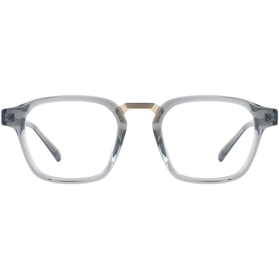 Timeless and stylish, these square eyeglasses combine a full-rim acetate frame with a vintage metal bridge featuring intricate engravings for added charm. The bold, chunky temple arms not only enhance durability but also lend a retro-inspired touch. Crafted from premium materials, these glasses fitted with a keyhole bridge are designed for everyday comfort and extended wear. Their versatile design makes them an excellent option for sunglasses, perfectly suited for oval and heart face shapes.
