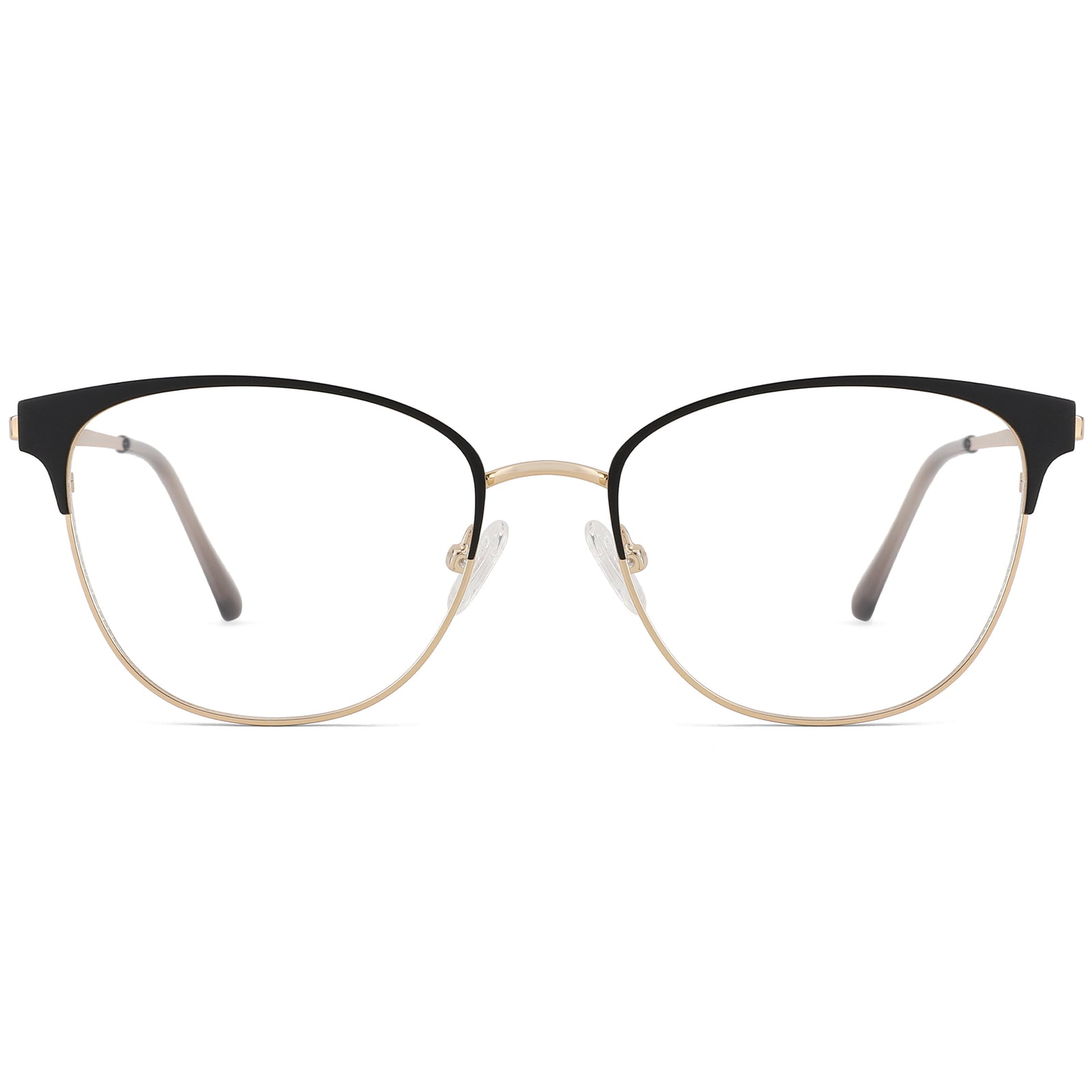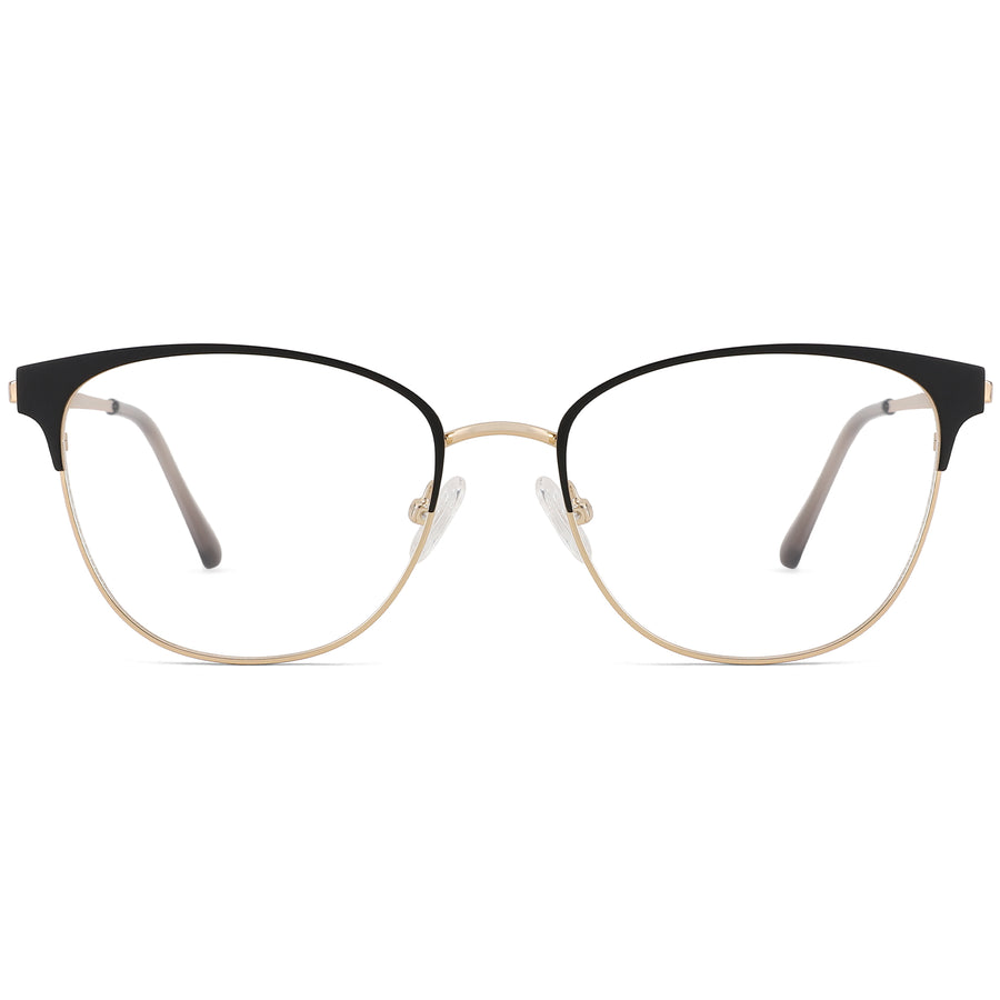 Meticulously crafted from premium metal, our full-rim cat-eye frames feature a chic black browline, blending classic charm with modern sophistication. Lightweight yet durable, these frames are designed for all-day comfort with adjustable nose pads and spring hinges. Perfect for women, they enhance oval and diamond face shapes with effortless elegance.