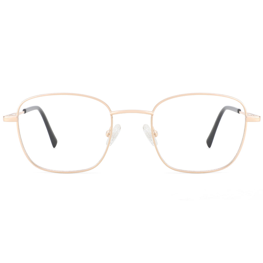 Elevate your style with our modern square frame, meticulously crafted from premium metal for a refined aesthetic. This full-rim design offers sophistication for everyday wear, featuring adjustable nose pads and spring hinges for a comfortable, well-balanced fit. Ideal for heart and oval face shapes, these frames deliver timeless appeal with a modern edge.