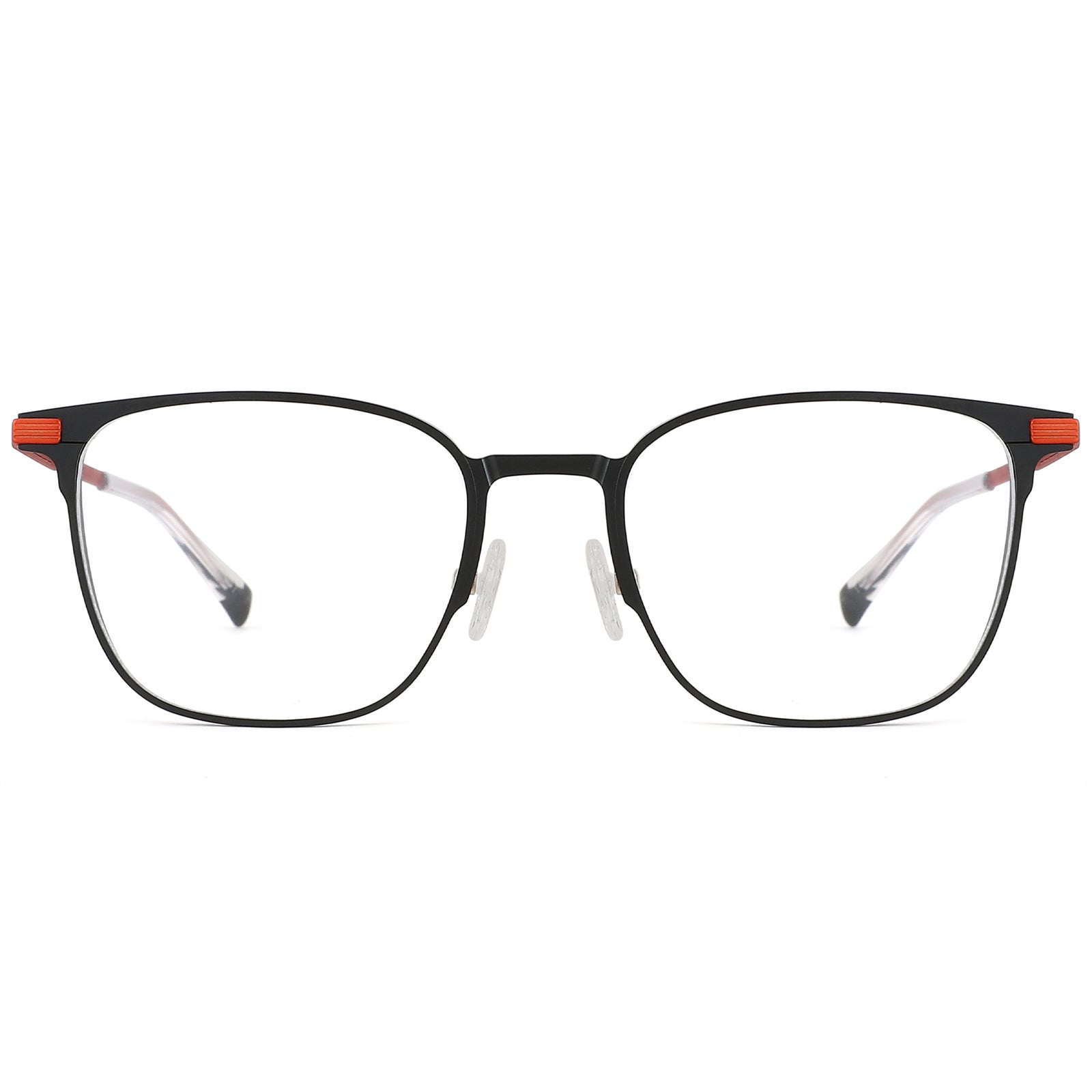 Simple and sophisticated, our modern square frames are designed with premium lightweight metal for lasting durability. Featuring a sleek metal connection at the temple arms and bendable, flexible arms, these frames ensure comfort with adjustable nose pads. Suitable for both men and women, they offer a versatile, stylish look, ideal for heart or oval face shapes.