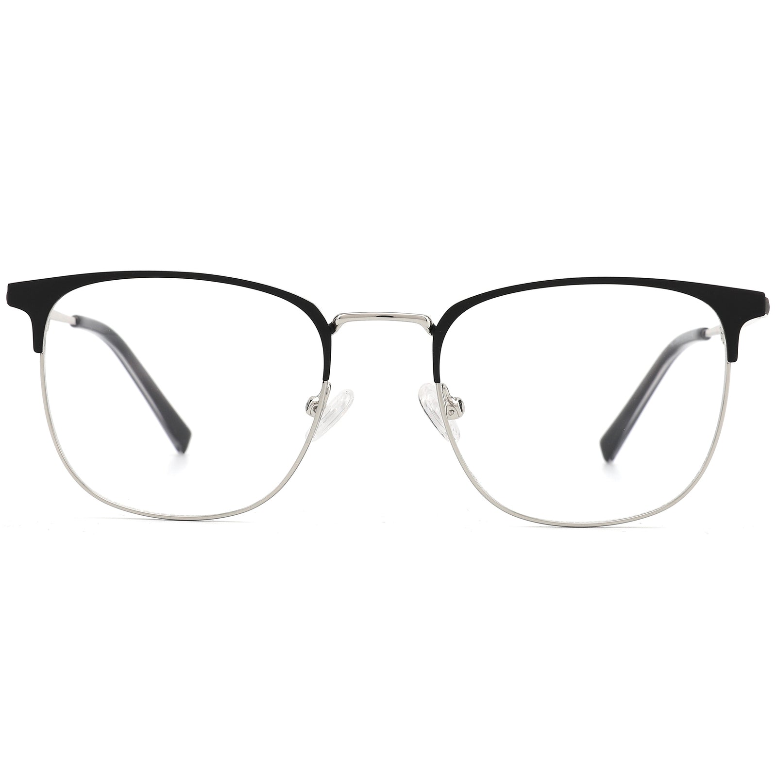 Our modern square frames exude a stylish and distinguished look, made from lightweight premium metal. With adjustable nose pads for superior comfort and subtle patterns at the temple arms, they are perfect for daily wear. Ideal for heart and oval face shapes, these frames seamlessly blend timeless elegance with contemporary flair.