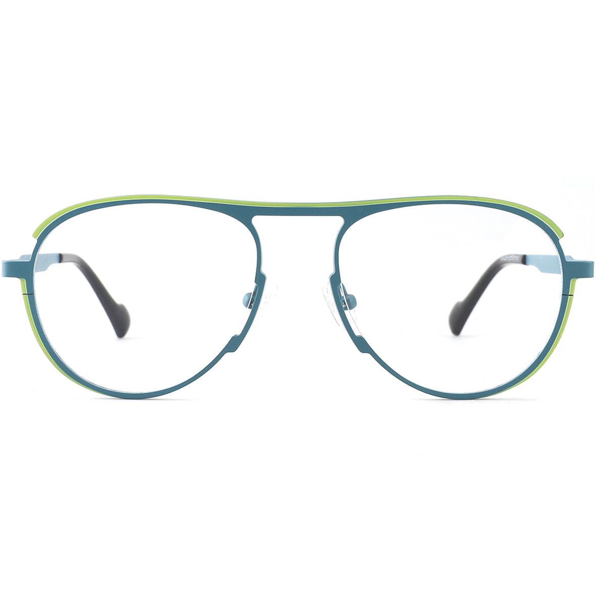Our aviator frames exude bold sophistication, meticulously crafted from sleek metal for a lightweight yet durable design. Featuring a fashion-forward cut-out design at the adjustable nose pads, these frames ensure both comfort and a precise fit. Available in versatile colors, they are ideal for enhancing heart and oval face shapes, offering a chic and modern style.