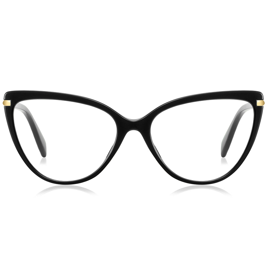 These bold cat-eye eyeglass frames combine retro charm with a modern edge, available in sleek black, playful tortoiseshell, and vibrant purple finishes. Crafted from lightweight TR90, they ensure durability, flexibility, and all-day comfort. Gold-tone accents at the temples add a touch of elegance, while wide rims and flattering angles enhance feminine style. Perfect for fashion-forward women, these frames suit round, oval, and heart-shaped faces, offering both statement design and reliable comfort for daily wear.