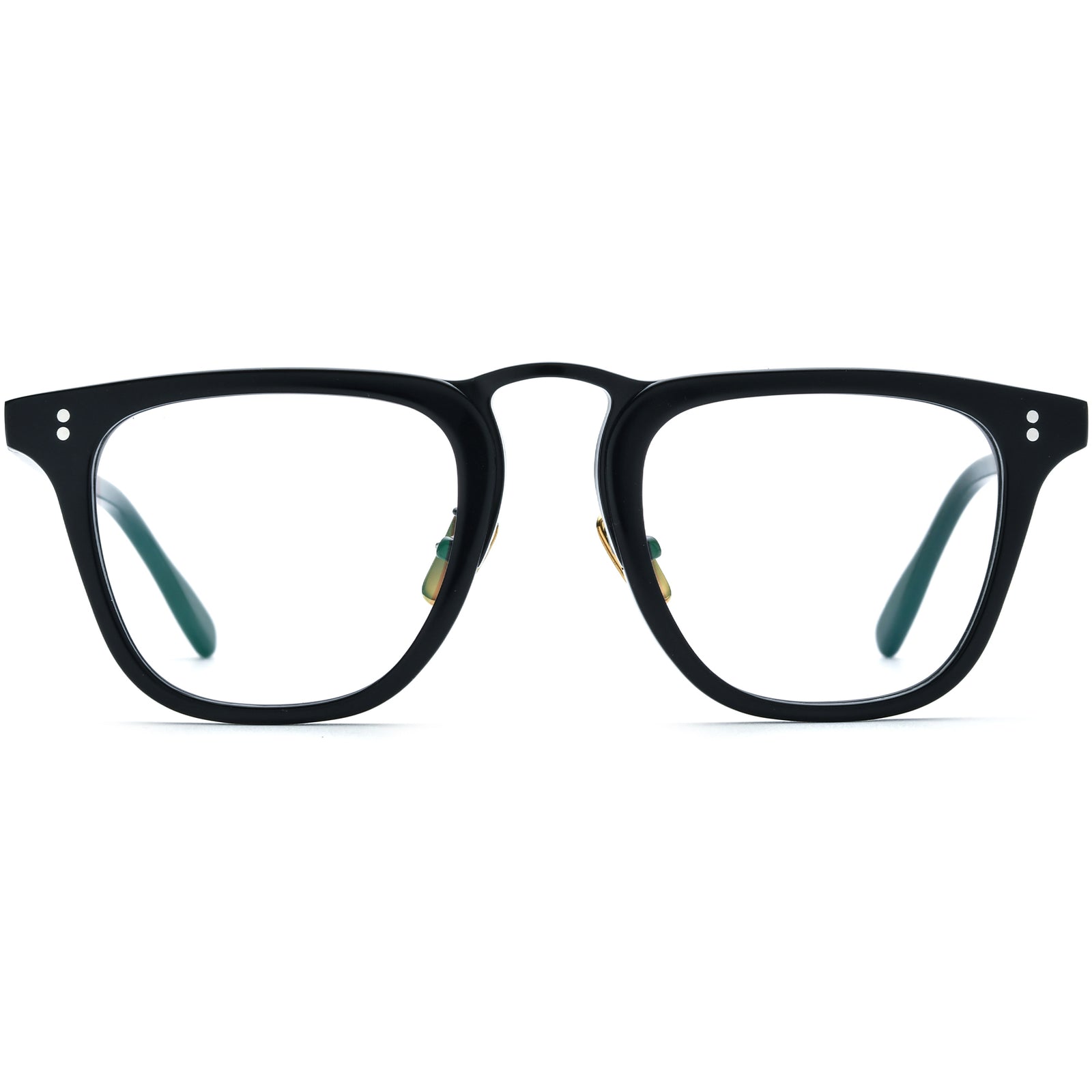 These bold square-shaped eyeglasses, crafted from high-quality acetate, exude timeless sophistication with their robust frame and double-rivet accents. Featuring titanium bridge and adjustable nose pads for a custom fit, these frames deliver all-day comfort while ensuring durability. Designed for both style and function, they suit a variety of face shapes, particularly oval and round, adding definition and structure. Perfect for both professional settings and casual outings, these glasses are a versatile addition to any wardrobe.