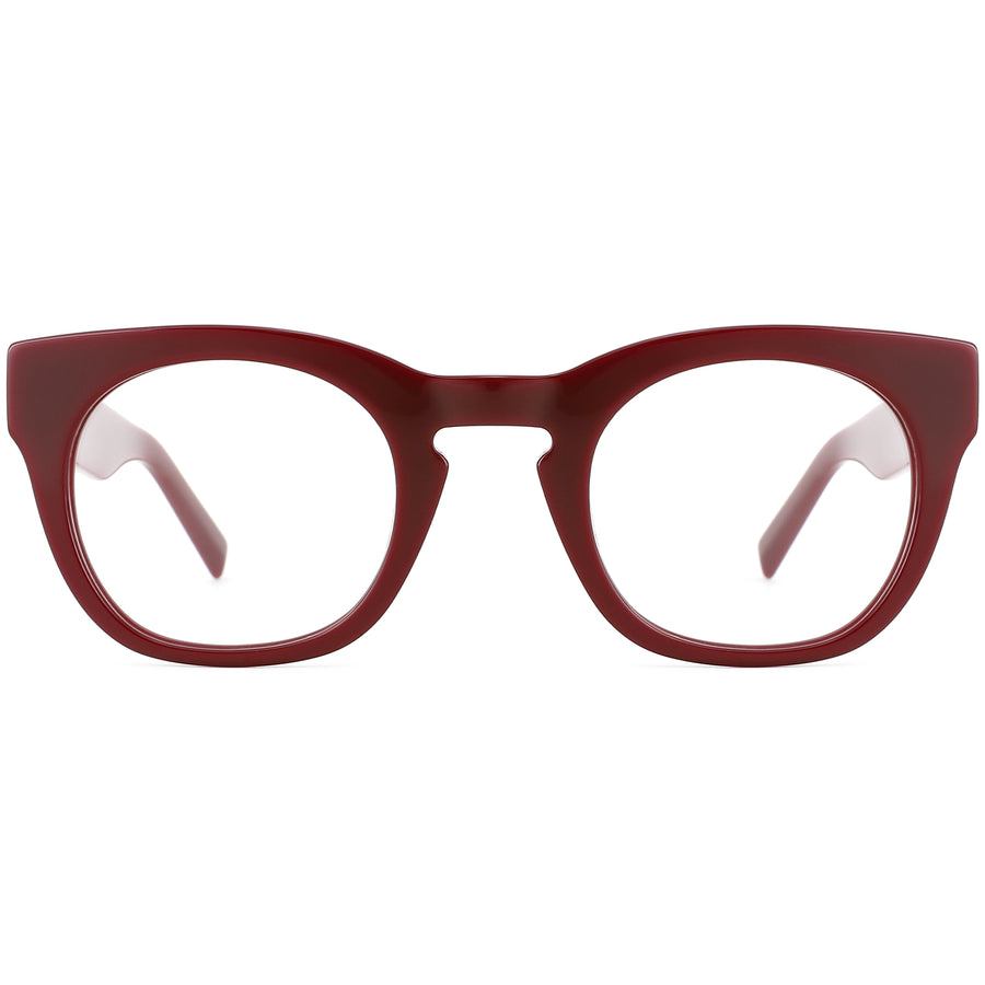 These unisex square glasses feature a full-rim design crafted from solid acetate, polished to a glossy finish for a sleek and stylish look. The chunky rims add a bold touch, while the keyhole bridge helps reduce pressure on the nose for enhanced comfort. Lightweight yet durable, these frames offer a secure and comfortable fit, perfect for all-day wear. Available in red, blue, tortoiseshell, and black, they bring versatility and style to any outfit.