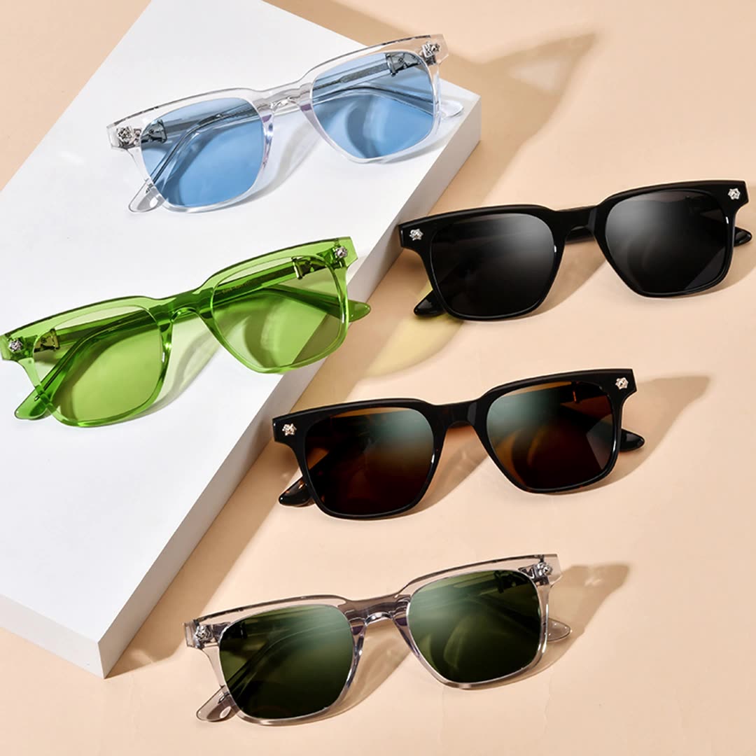 Elevate your everyday look with these square acetate sunglasses, crafted for both comfort and statement-making style. The bold full-rim frame features sharp corners and clean lines, offering a confident, structured silhouette. Designed with durable, high-quality acetate and available in a variety of rich colorways—such as deep navy, tortoiseshell, amber honey, and translucent green—these shades are built to turn heads. The flexible hinges and wide temples ensure a secure fit, while tinted lenses provide essential UV protection. Ideal for oval, round, or heart-shaped faces, these designer sunglasses blend timeless appeal with a fresh, modern twist—perfect for driving, travel, or everyday wear. Add a pop of color or a cool vintage flair to your eyewear collection with these versatile fashion sunglasses.
